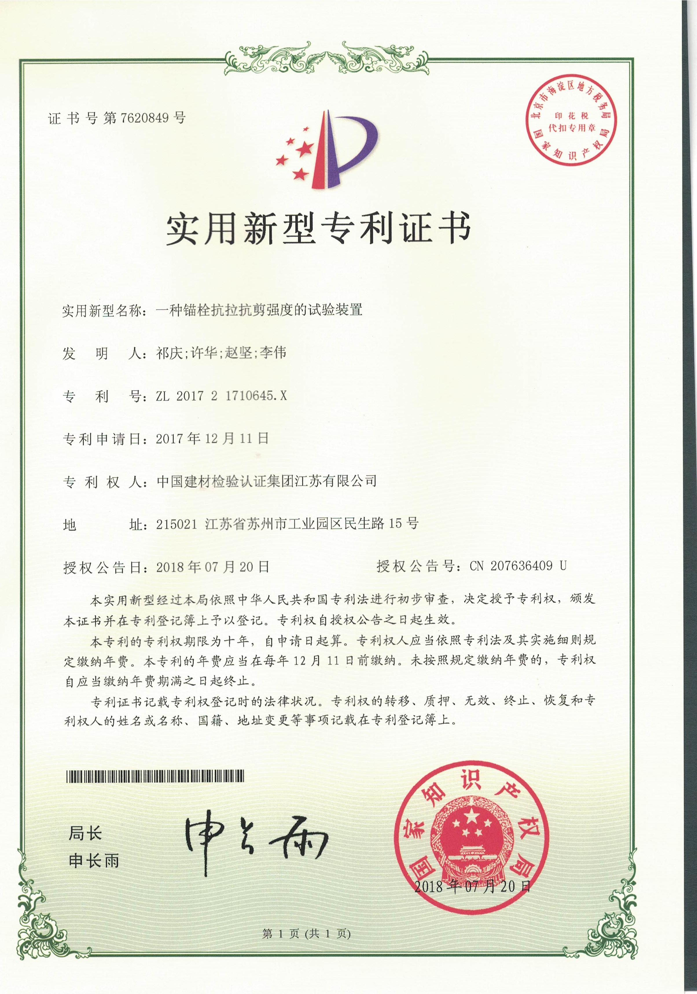 專利權(quán)人:中國(guó)建材檢驗(yàn)認(rèn)證集團(tuán)江蘇有限公司