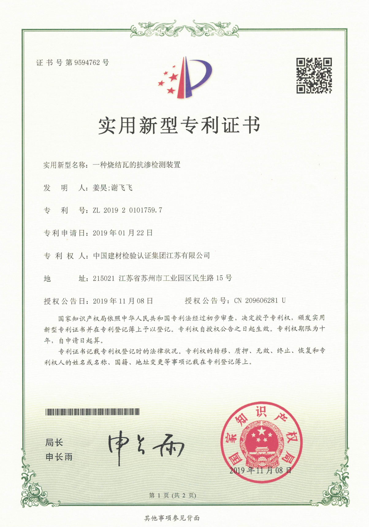 專利名稱:一種燒結瓦的抗?jié)B檢測裝置 專利權人:中國建材檢驗認證集團江蘇有限公司 時間:2019-11-08